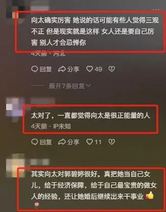 向太这番话一出来,网上炸开了锅,有人骂她三观不正,说这是“大婆生存法则”,把婚姻搞得像做生意;有人却觉得她够实在,“人间真实不过如此”。