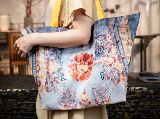 以皇家石窟的莲花飞天藻井为图案,时尚百搭